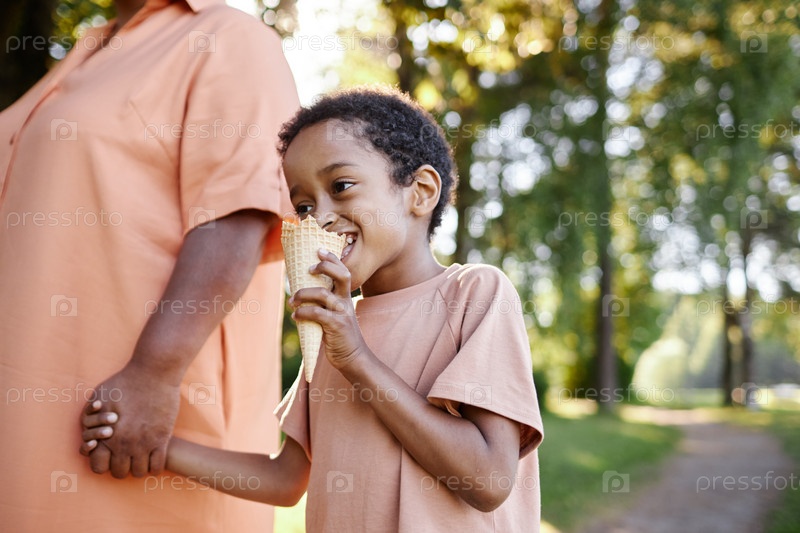 Афроамериканский мальчик наслаждается мороженым