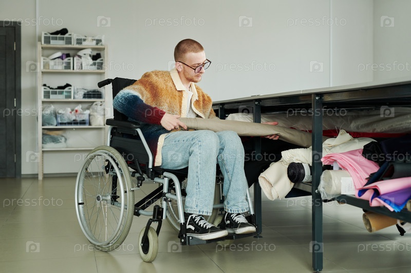 Мужчина с инвалидностью, принимающий серое текстиль