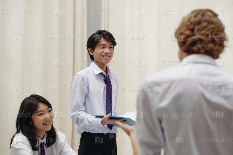 Участие в групповой дискуссии в классе с улыбающимися учениками