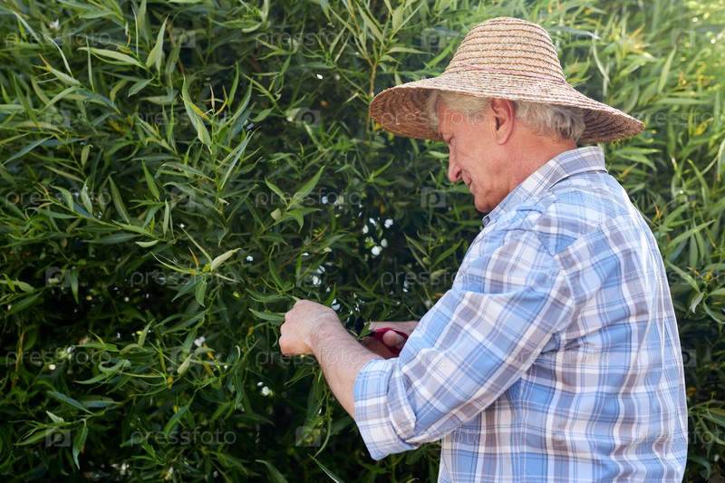 Садоводство Человек обрезка растений в летнем саду