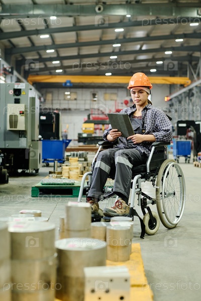 Инспектирование машин на производственном предприятии в инвалидном кресле