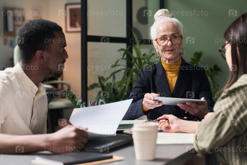 Обсуждение проекта со старшим коллегой в офисе