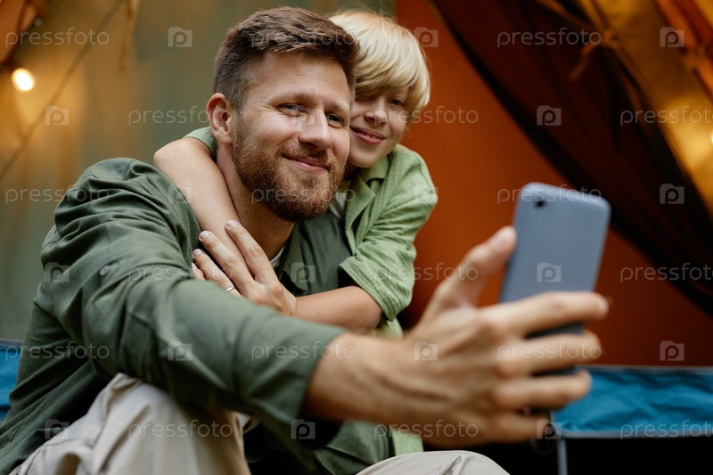 Момент сближения: отец и сын делают селфи дома