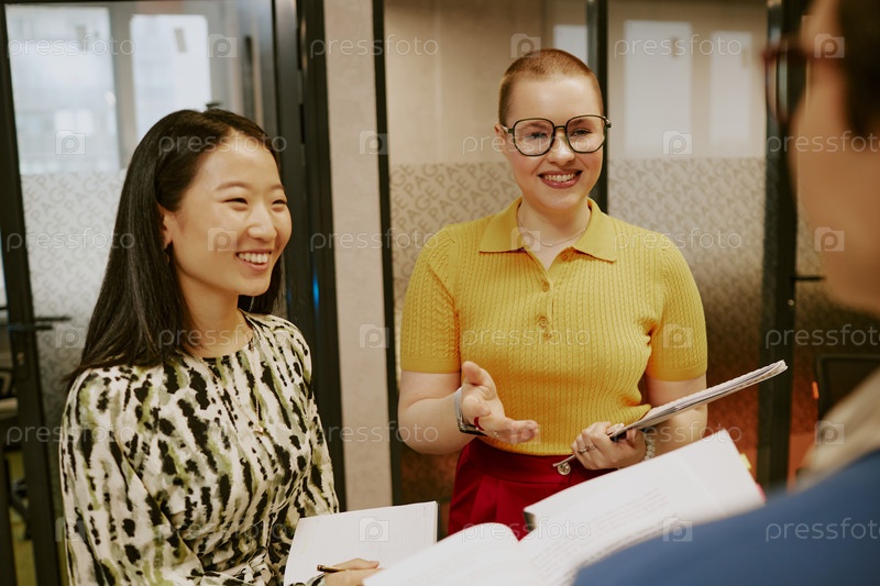 Бирациальные женщины, разговаривающие с неузнаваемой коллегой