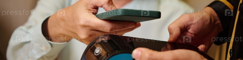 Мужчина платит смартфоном за обед