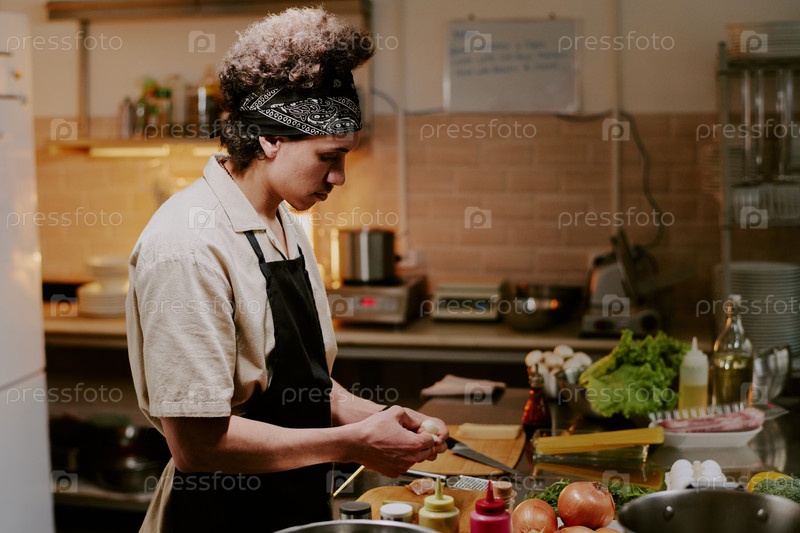 Молодой мужской повар готовит овощи