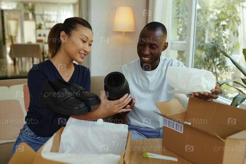 Пара проверяет товары после доставки