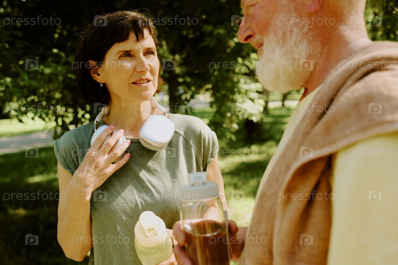 Брюнетка-женщина разговаривает со своим старым спутником