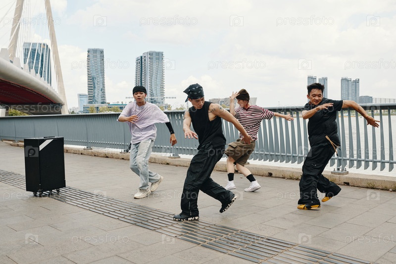Танцевальная группа, выступающая с хип-хоп рутиной на открытом воздухе
