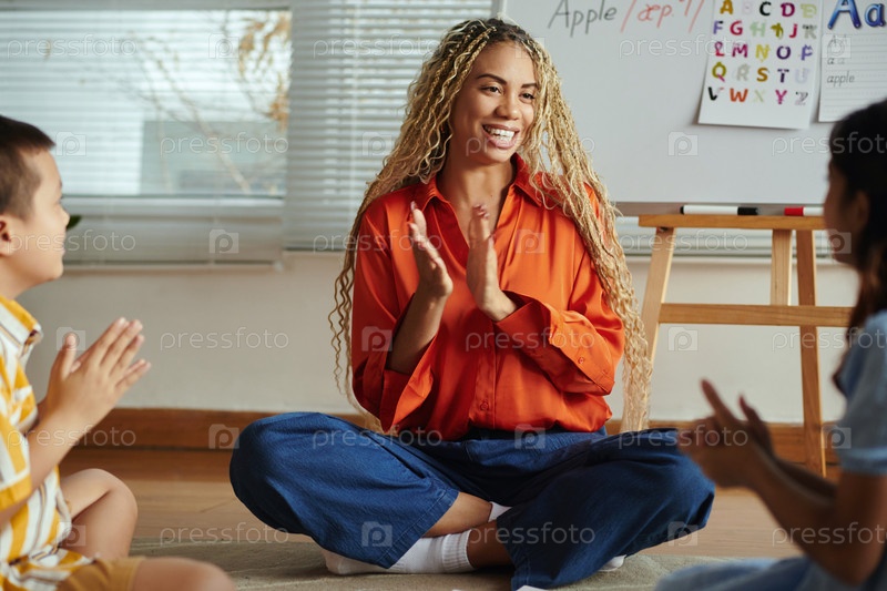 Педагог хлопает в ладоши и взаимодействует с молодыми учениками