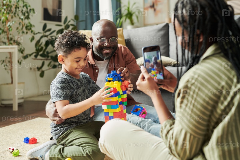 Женщина снимает видео мужа и сына