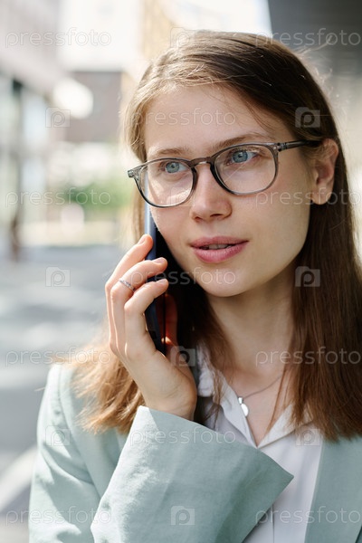 Молодая женщина делает телефонный звонок на улице
