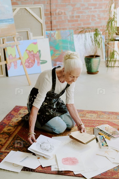 Старший художник, смотрящий на эскизы