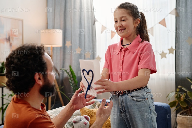 Подарочная карта для улыбающейся девушки в уютной гостиной