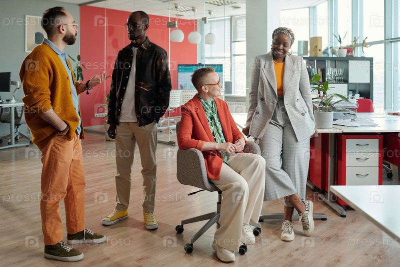 Разнообразные команды, участвующие в дискуссиях в современном офисе