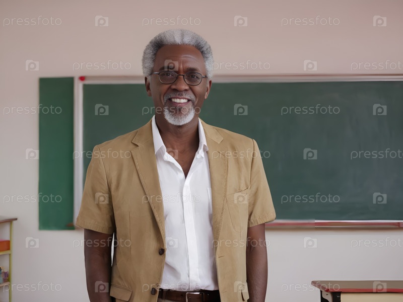 Улыбающийся старший учитель, стоящий в классе