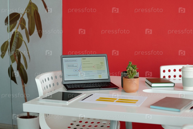 Рабочий стол с ноутбуком и канцелярскими принадлежностями