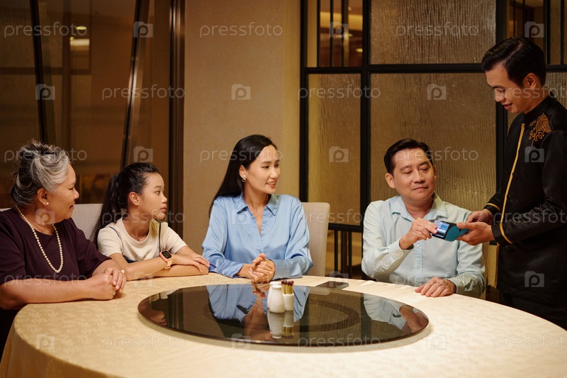 Человек платит за ужин в ресторане