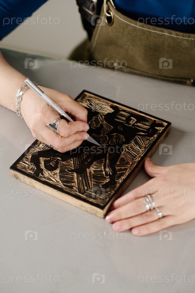 Резание печатного узора на маленькой доске