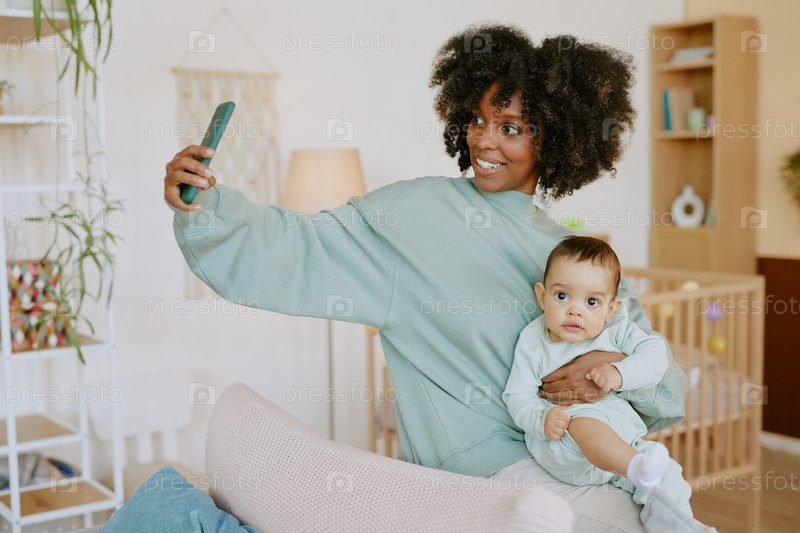 Молодая афроамериканская мама делает селфи