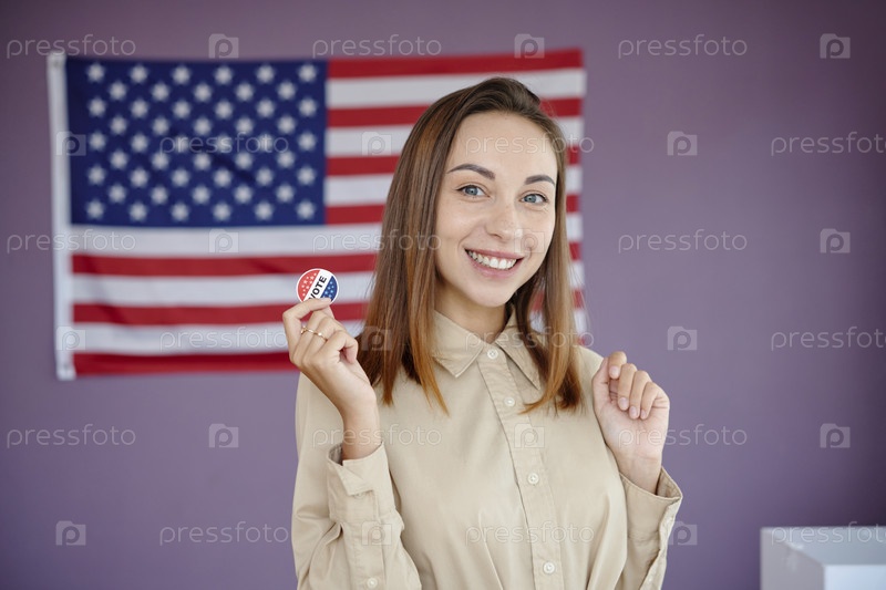 Молодая женщина, голосующая за свою страну
