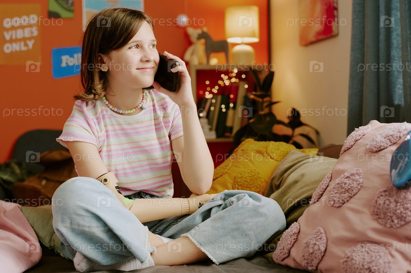 Подростковая девушка звонит по телефону