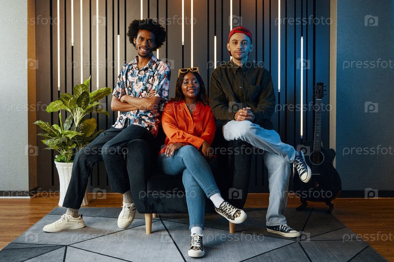 Музыкальная группа сидит в студии