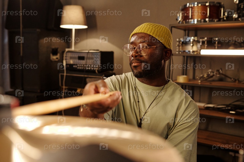 Играть на барабанах в студии с фокусом и страстью