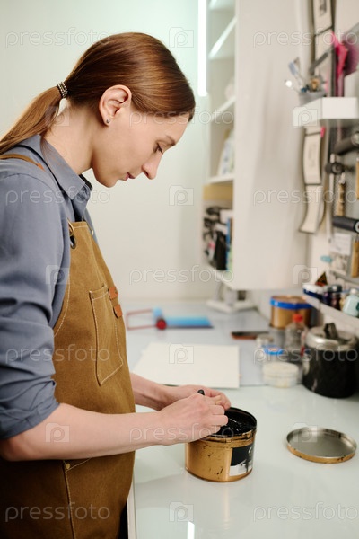 Смешивание краски в банке перед началом работы по печати