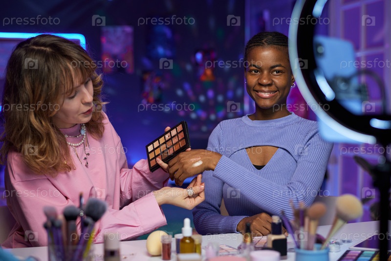 Две женщины тестируют продукты красоты