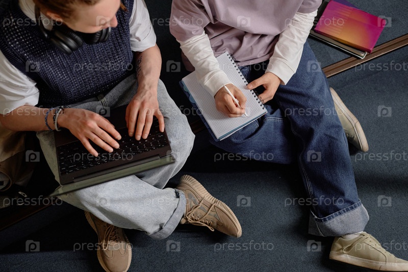 Одноклассники пишут в блокноте Мужчины вместе учатся