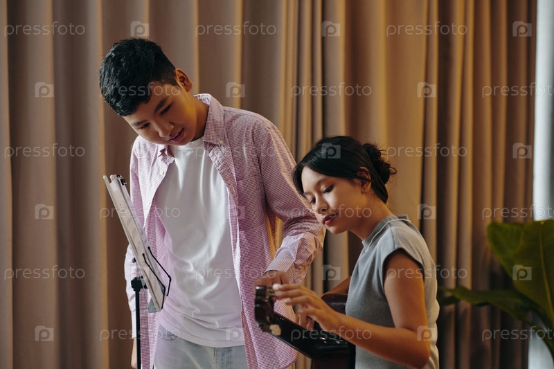 Практика вместе в музыкальной комнате с стендом для пластиновой музыки