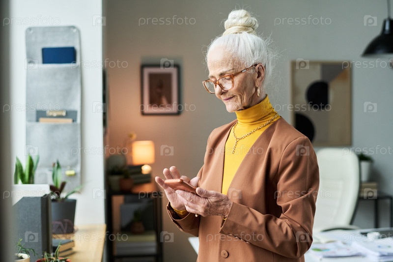 Пожилая женщина, работающая в современной офисной обстановке