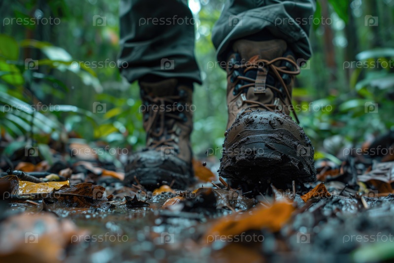 Пешие прогулки по грязной тропе в густой лесной среде