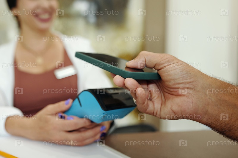Клиент, оплачивающий мобильный телефон для спортивного тренажерного зала