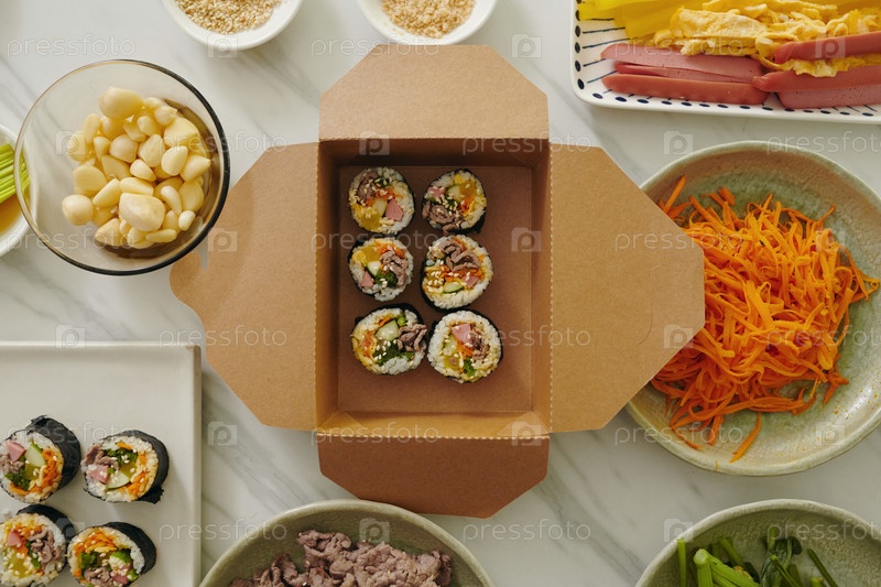 Кимбап упаковка в корейской картонной коробке