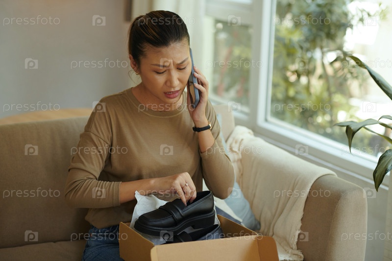 Раздраженная женщина делает телефонный звонок для поддержки