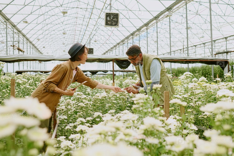Изучение цветов в ярко освещенной теплице
