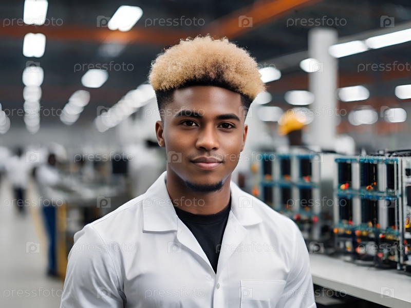 Портрет улыбающегося инженера, работающего на производственном предприятии