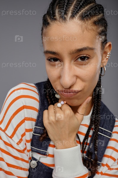 Самодовольная молодая женщина Closeup