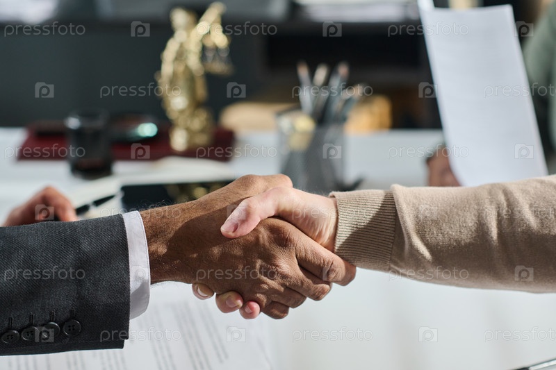 Пожимание рук межкультурных юристов-мужчин