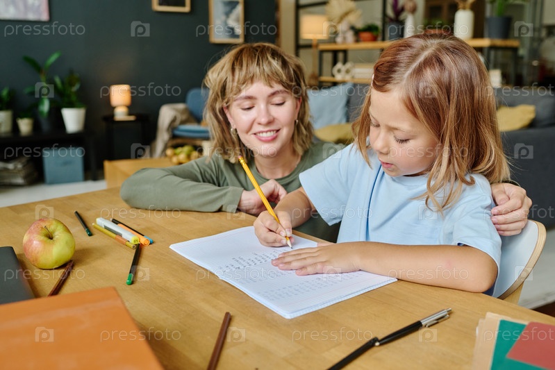 Мать помогает дочери с математикой