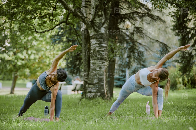 Женщины-спортсменки, практикующие йогу