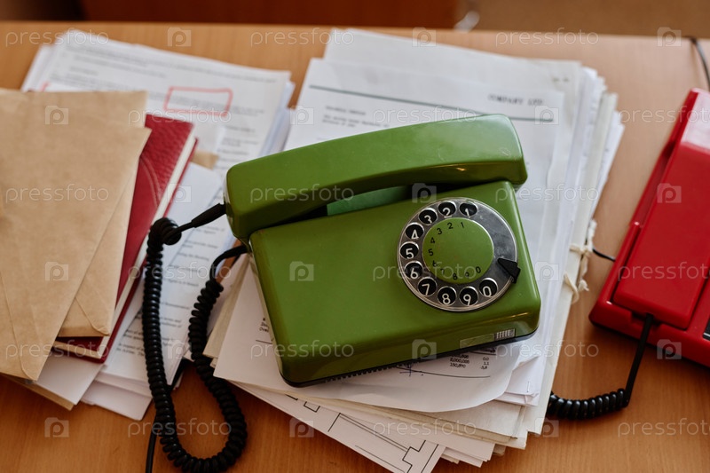 Stacked Documents with Vintage Rotary Dial Phone Поставленные документы с винтажным ротационным телефоном