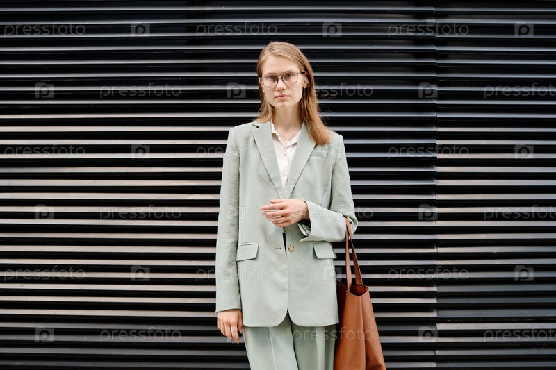 Молодая бизнесвуменка, стоящая на открытом воздухе
