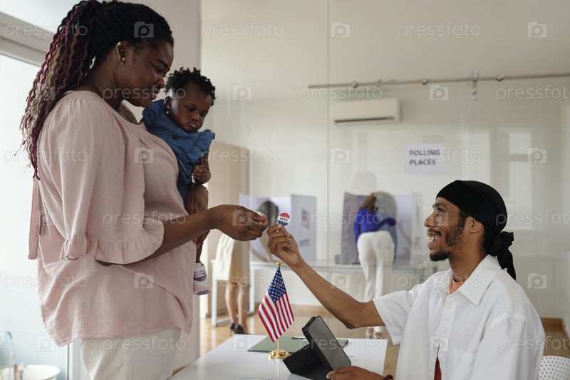 Молодая мать получает патриотический значок