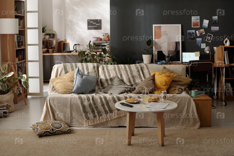 Стол с фаст-фудом в гостиной