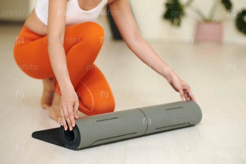 Rolling Out Yoga Mat для утренней тренировки