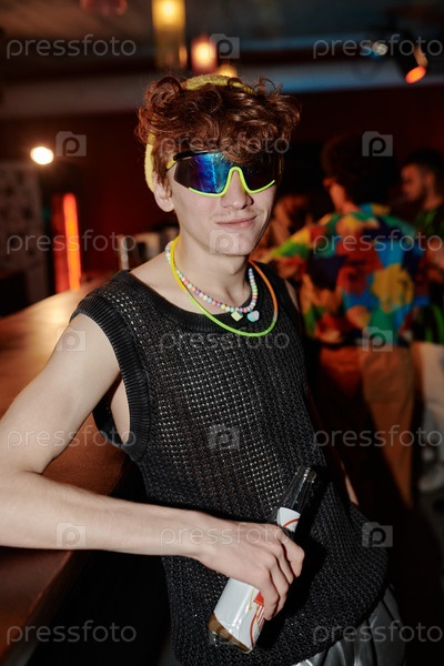 Стильный парень с бутылкой пива в баре