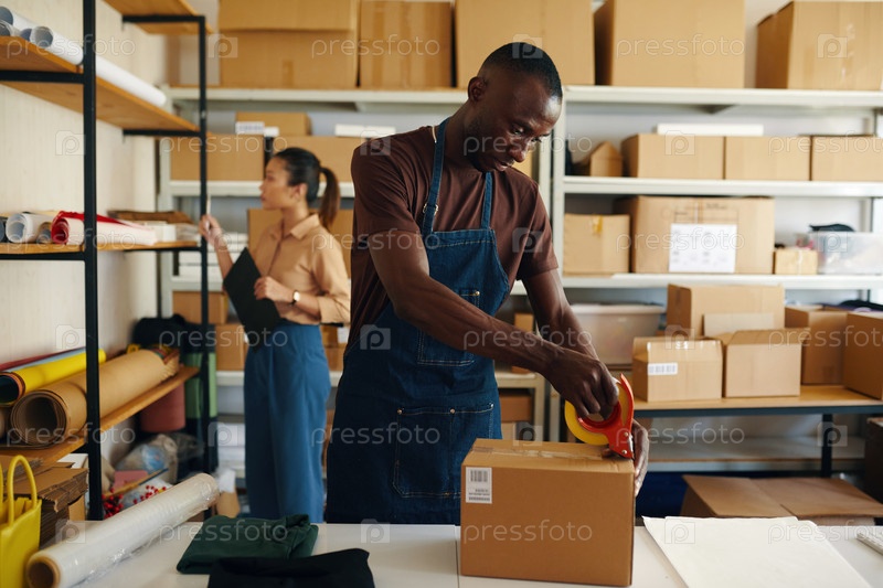 Использование ленты для упаковки коробок Человек